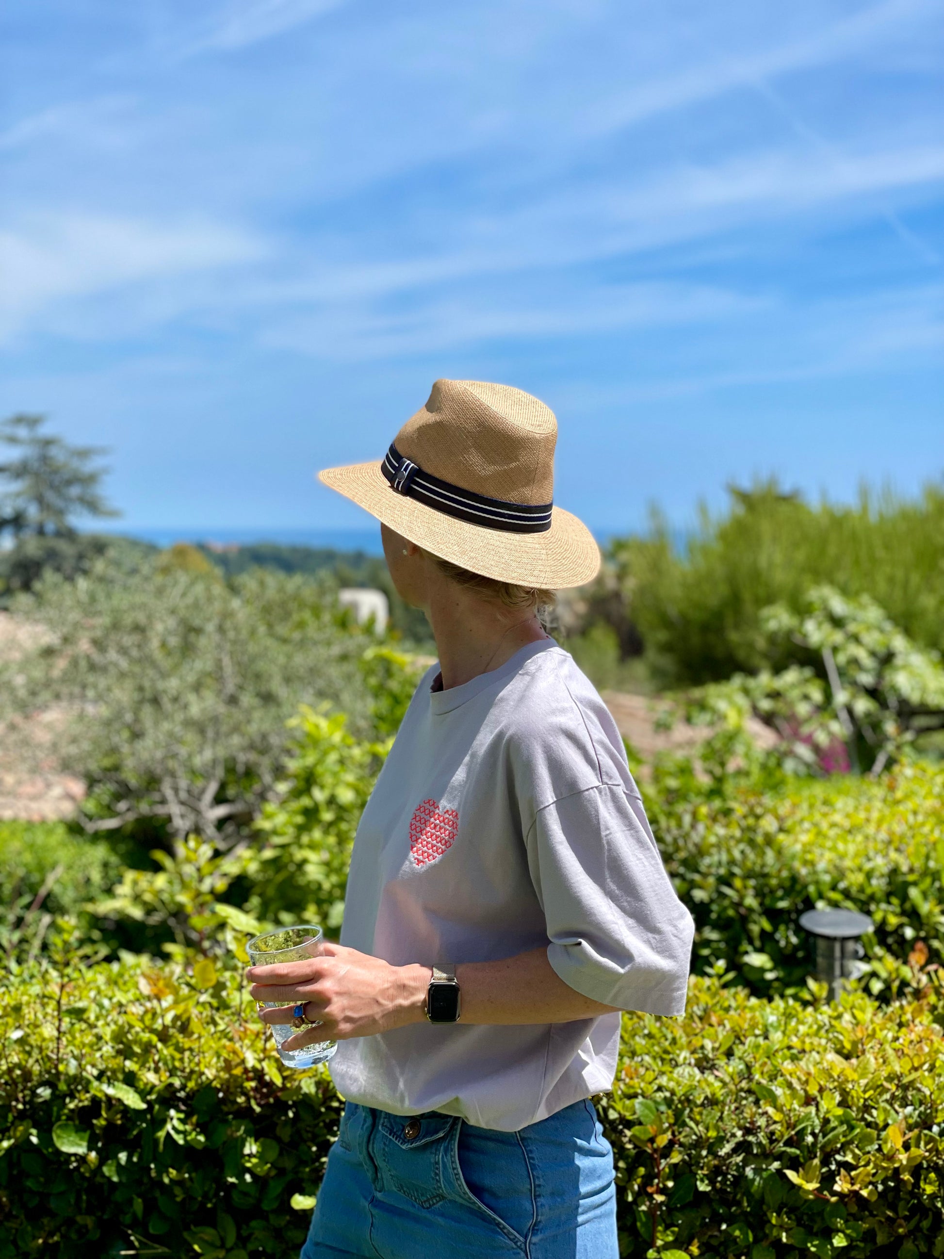 Vergleich: Romy ist 1,73 m groß und trägt das T-Shirt in Größe M (fällt lässig aus)