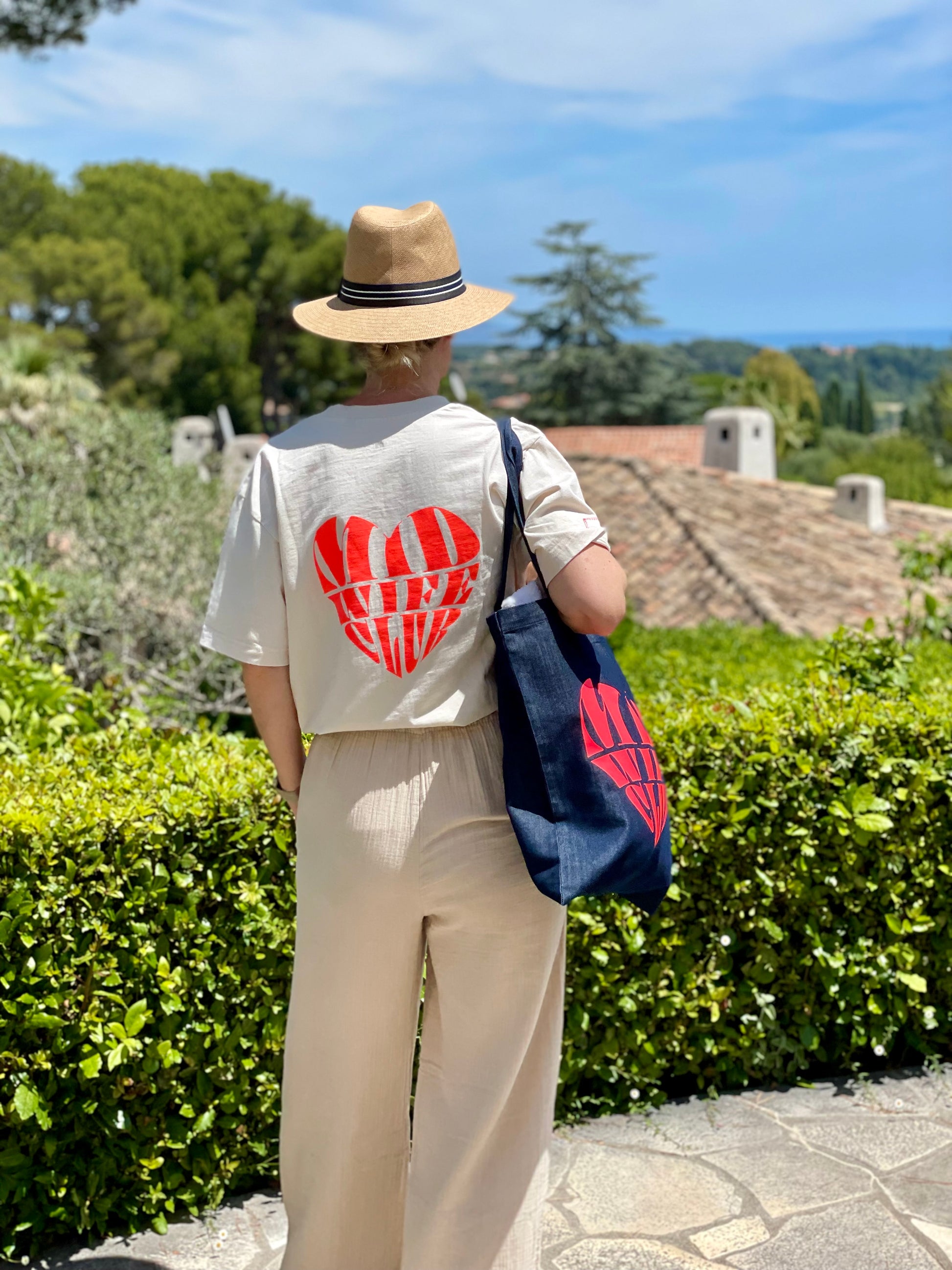 Vergleich: Romy ist 1,73 m groß und trägt das T-Shirt in Größe M (fällt lässig aus)