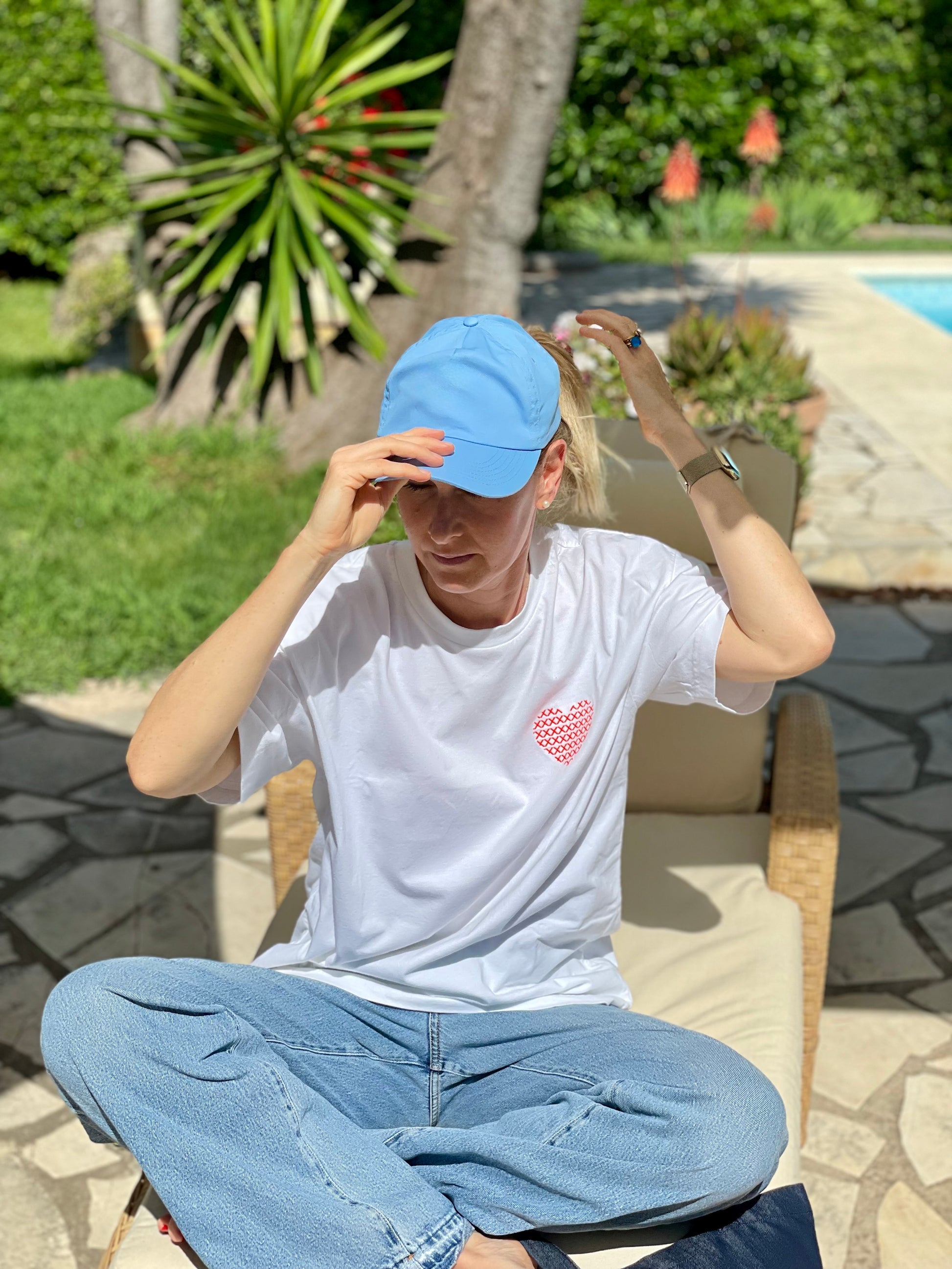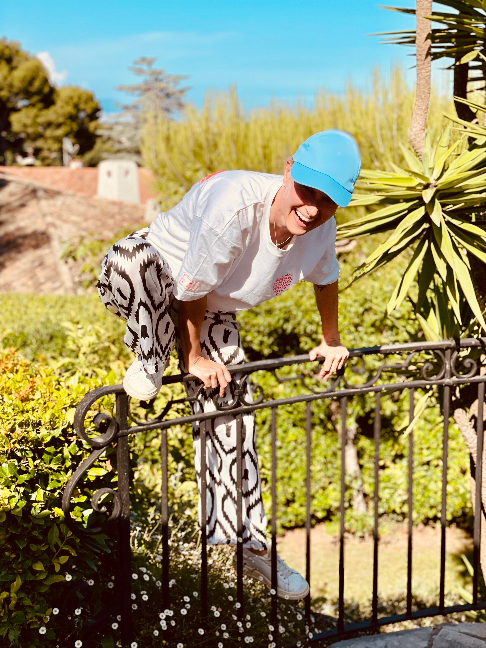 Vergleich: Romy ist 1,73 m groß und trägt das T-Shirt in Größe M (fällt lässig aus)